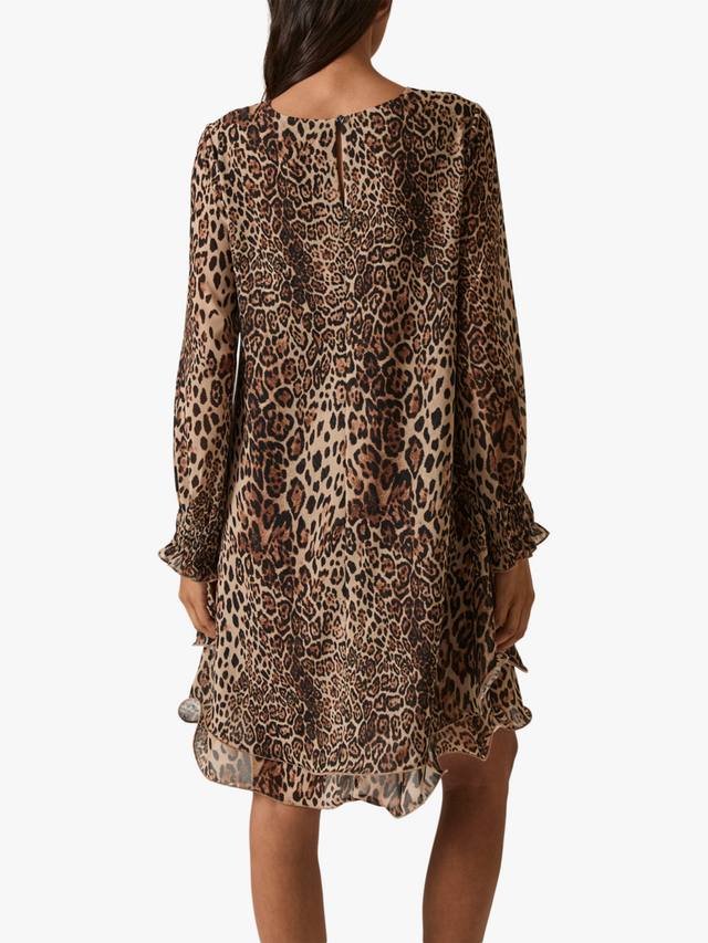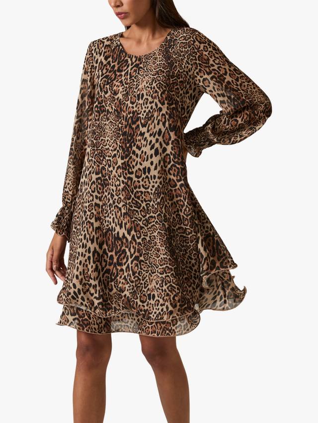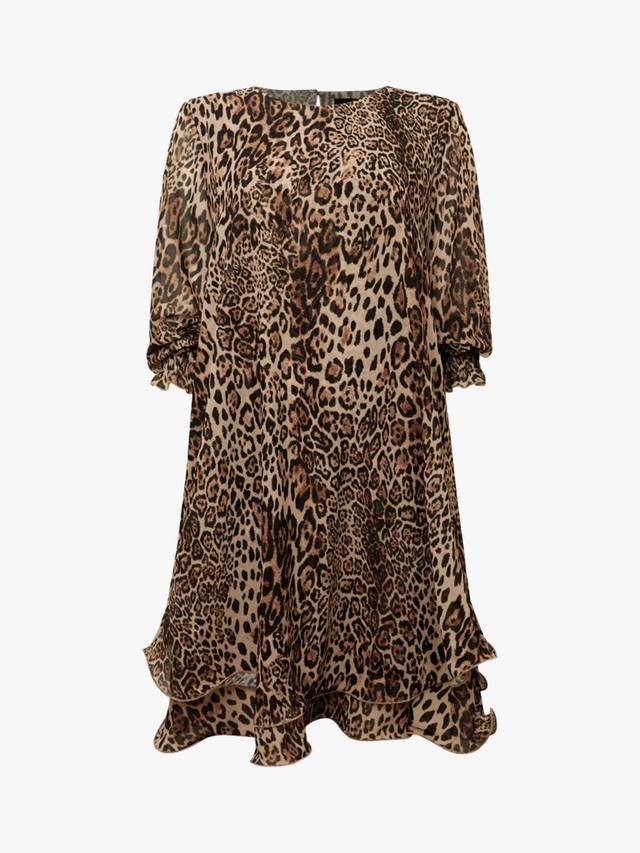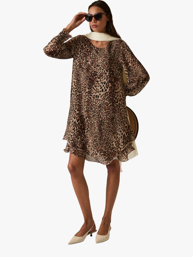 Это платье длиной до колена от James Lakeland выполнено из лёгкого полиэстерового шифона и украшено ярким леопардовым принтом по всей поверхности. Свободный А-силуэт дополняет многослойный волнистый подол, который добавляет лёгкости и движения. Длинные рукава с присборенными манжетами обеспечивают комфорт и лёгкий объём, а застёжка на одну пуговицу сзади на горловине обеспечивает лёгкость и изысканный вид.