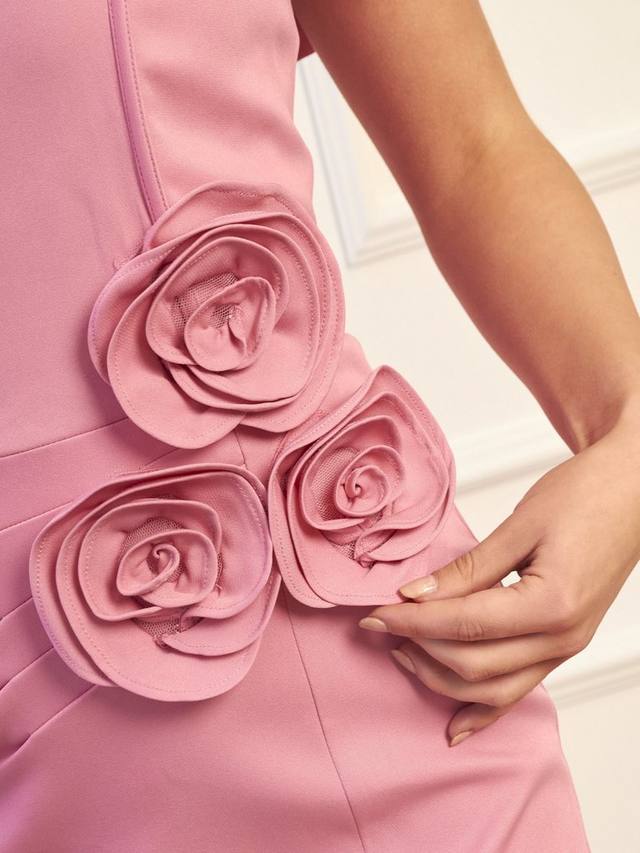 Это платье средней длины от Chi Chi London с четким силуэтом и облегающим кроем выполнено из прочной ткани. Вырез горловины с открытыми плечами и короткие рукава украшены красивыми цветочными деталями.