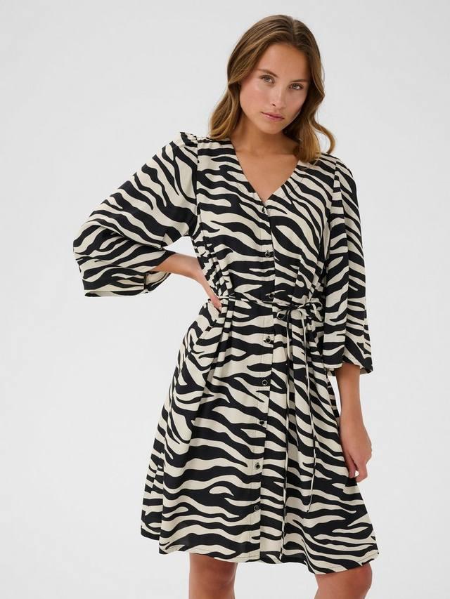 Это мини-платье от KAFFE удобного А-силуэта выполнено из воздушной смесовой вискозы. Оно легко подчеркивает фигуру благодаря непринужденному V-образному вырезу и рукавам длиной три четверти, а смелый принт зебра дополняет его ярким акцентом.