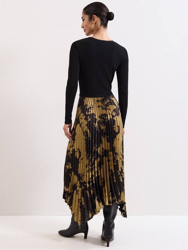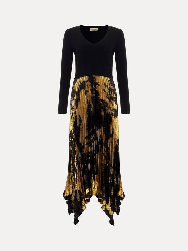 Это платье миди со складками и асимметричным кроем создаст эффектный силуэт для ваших повседневных планов. Трикотажный лиф с V-образным вырезом и юбка с абстрактным рисунком обеспечат комфорт на весь день благодаря подкладке из вискозы.