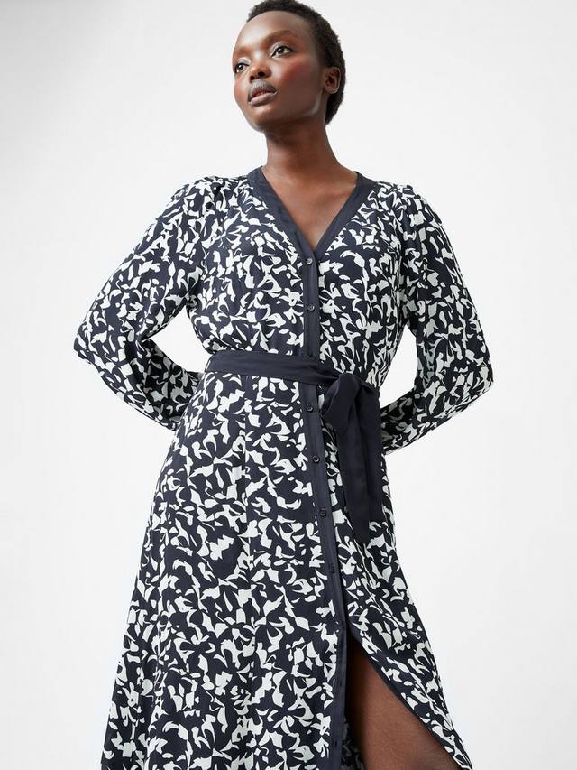 Ощутите смелую элегантность в платье Kelly Almere Crepe. Это платье с цветочным принтом, V-образным вырезом, застежкой на пуговицы спереди и завязывающимся поясом станет женственным и элегантным дополнением к вашему гардеробу.