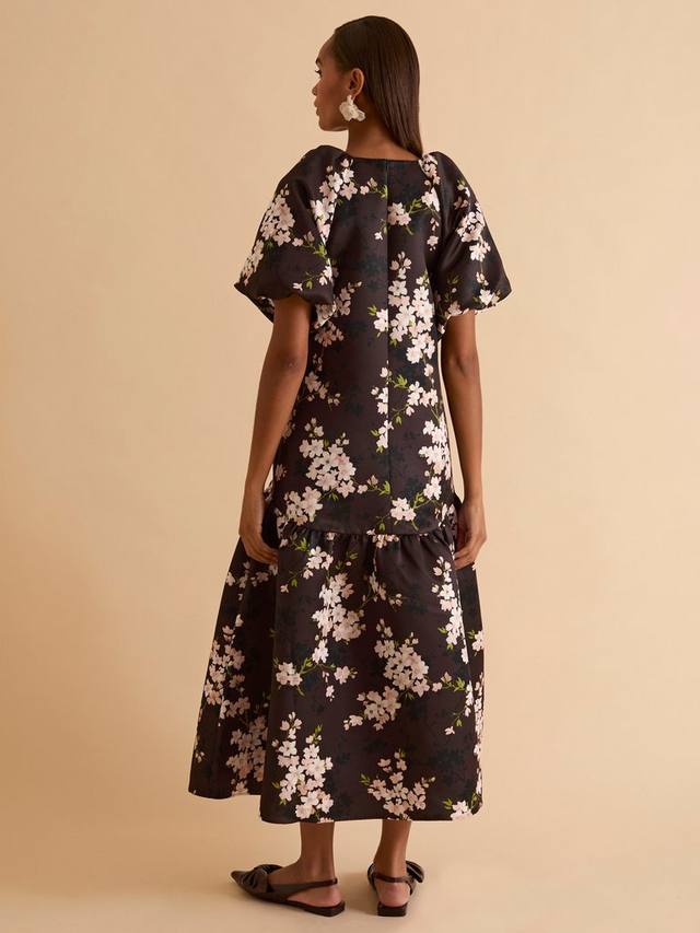 Это платье миди с объёмным силуэтом – настоящая визитная карточка Florere. Сочетание эффектных рукавов-блузонов и принта Шоколадные цветы делает его настоящей звездой сезона.