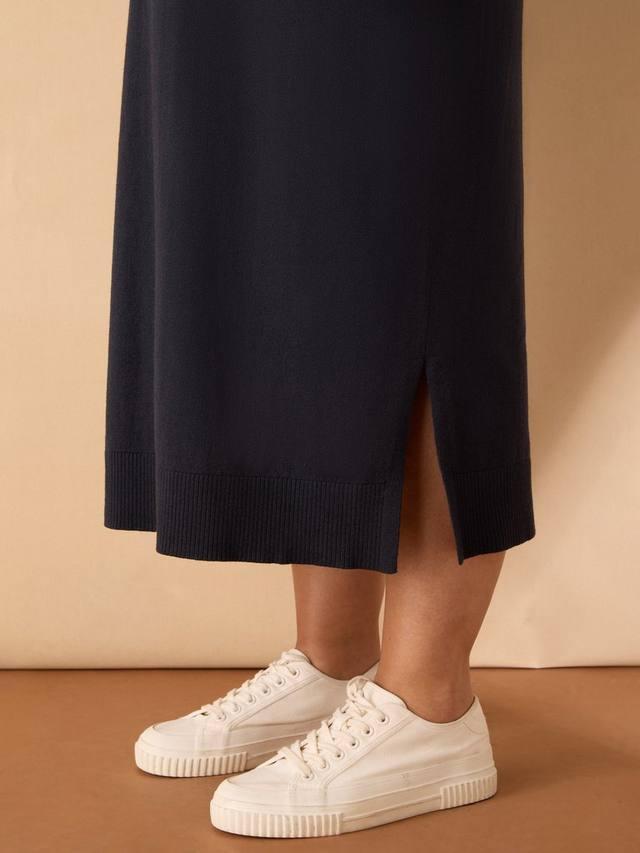 Это трикотажное платье-джемпер с V-образным вырезом идеально сочетает в себе комфорт и стиль. Платье отличается ребристым V-образным вырезом и свободным спущенным плечом. Длинные рукава, ребристые манжеты и подол, а также длина миди создают непринужденный и уютный силуэт. Боковые разрезы не стесняют движений, делая его универсальным предметом гардероба, который можно носить как в сочетании с другими вещами, так и отдельно в прохладную погоду.