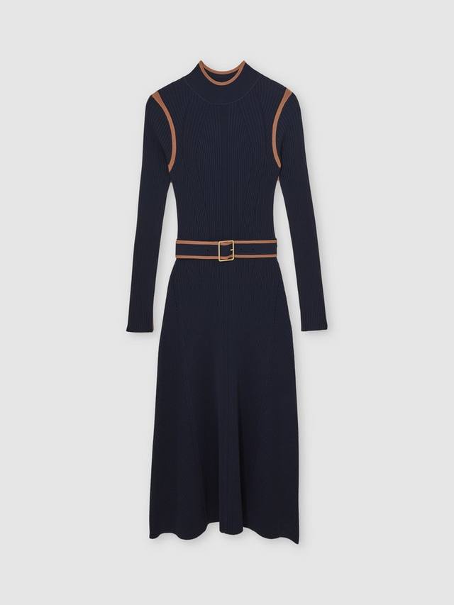 Платье миди с цветовыми блоками и расклешенным кроем. Высокий ворот и длинные рукава обеспечивают комфорт, а мягкая вискозная смесь не сковывает движений, создавая элегантный и готовый к любым ситуациям образ.
