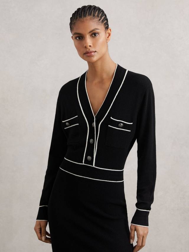 Платье-джемпер миди от Reiss. Узкий силуэт и мягкая шерстяная смесь обеспечивают комфорт и элегантный вид, а продуманный V-образный вырез и классический крой сделают ваш стиль привлекательным и в то же время профессиональным.