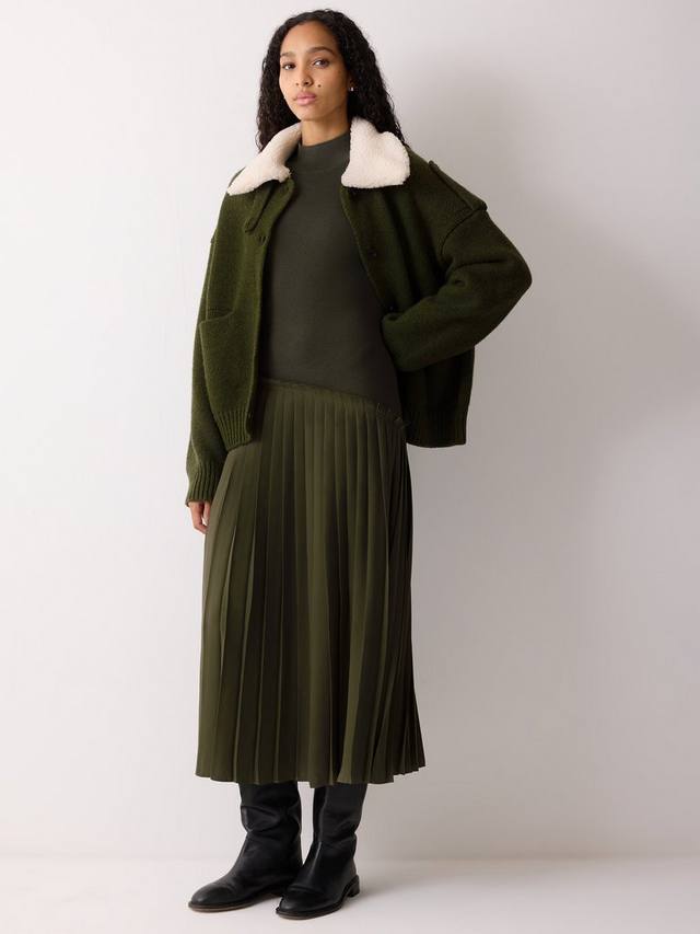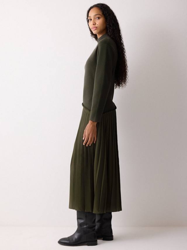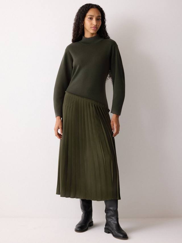 Выбирайте это платье-джемпер с наступлением холодов. Теплое и уютное платье из роскошной шерстяной ткани с игривыми элементами, такими как контрастная плиссированная юбка и слегка ребристый воротник. Нам нравится универсальность этого изделия, которое идеально подходит для множества образов.