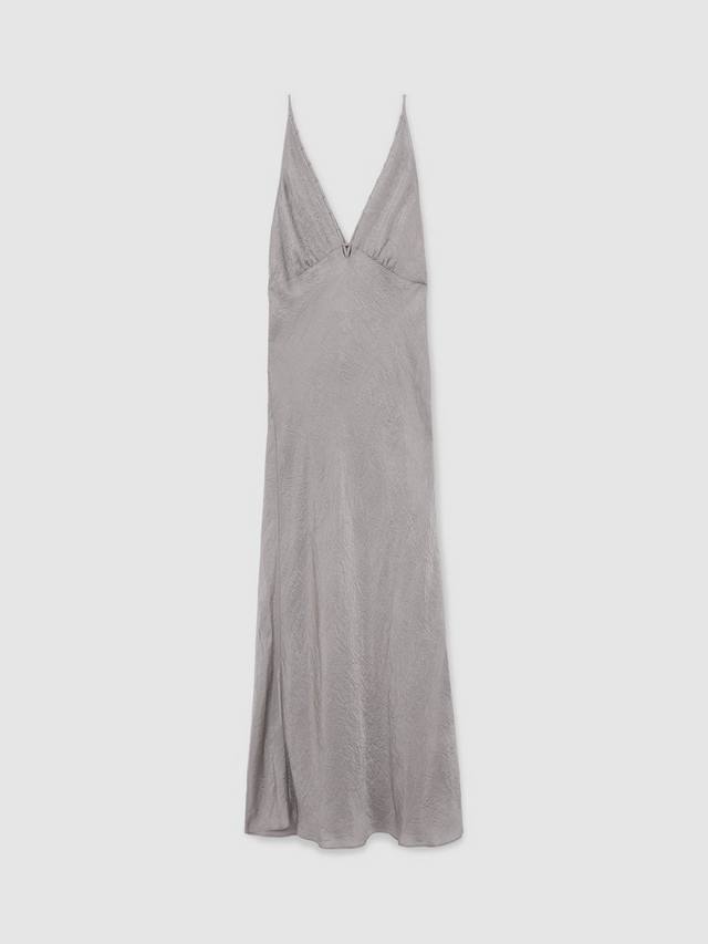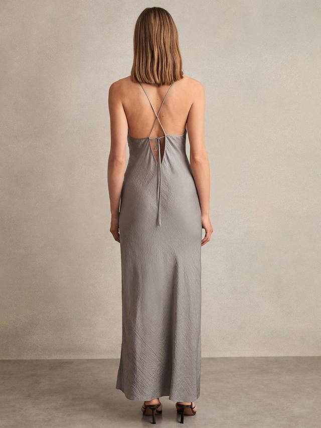 Это платье длиной до пола от Reiss с А-образным силуэтом легко надевать и носить. Оно выполнено из пышного жатого атласа. Этот фасон с бретельками и универсальным V-образным вырезом лишен лишних украшений.
