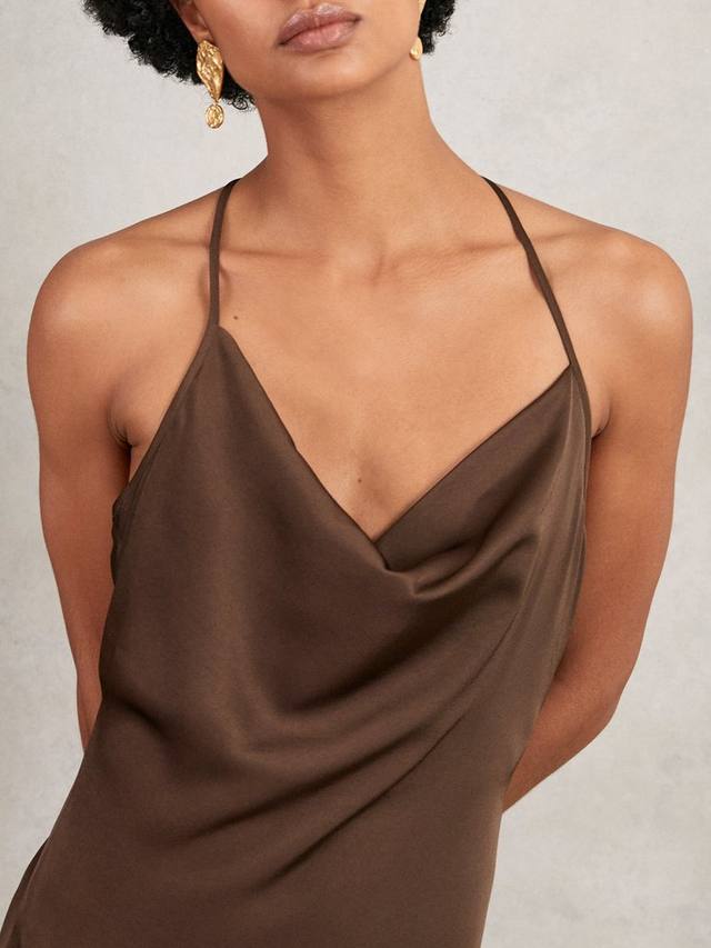 Это длинное платье-комбинация с привлекательным воротником-хомут, спинкой-борцовкой и облегающим кроем с разрезами по низу обеспечивает комфорт и элегантность движений. Изготовлено из мягкой, струящейся ткани, которая легко расчесывается, когда вы хотите привлечь к себе внимание.