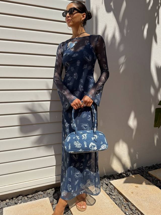 Изготовлено из сетчатой ткани, которая хорошо тянется и не сковывает движений. Принт Делорис с некоторыми из культовых мотивов NFD: рука, сердце и глаз. NFD основан на оловянных украшениях ручной работы, созданных основательницей бренда Люси! Мягкая основа делает это платье идеальным для ношения в любое время года. Наденьте его поверх нижнего белья для создания более сексуального образа или добавьте немного прикрытия с помощью комбинации и дополните образ туфлями на невысоком каблуке для непринужденного офисного или вечернего образа. Посадка очень удобная, она действительно подчеркивает изгибы фигуры и талию.