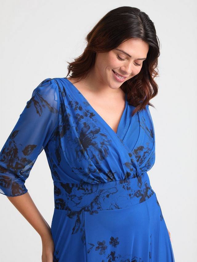 Потрясающее макси-платье с принтом. Это поистине красивое платье с принтом выполнено из мягкой и струящейся эластичной сетки POWERFIT. Лиф с запахом, поддерживаемый фирменной лентой Scarlett & Jo MagicBand, подчеркивает фигуру, а струящаяся юбка сужается к низу, создавая эффектный изгиб. Рукава 3/4 образуют элегантную линию плеч с небольшими съёмными подплечниками.