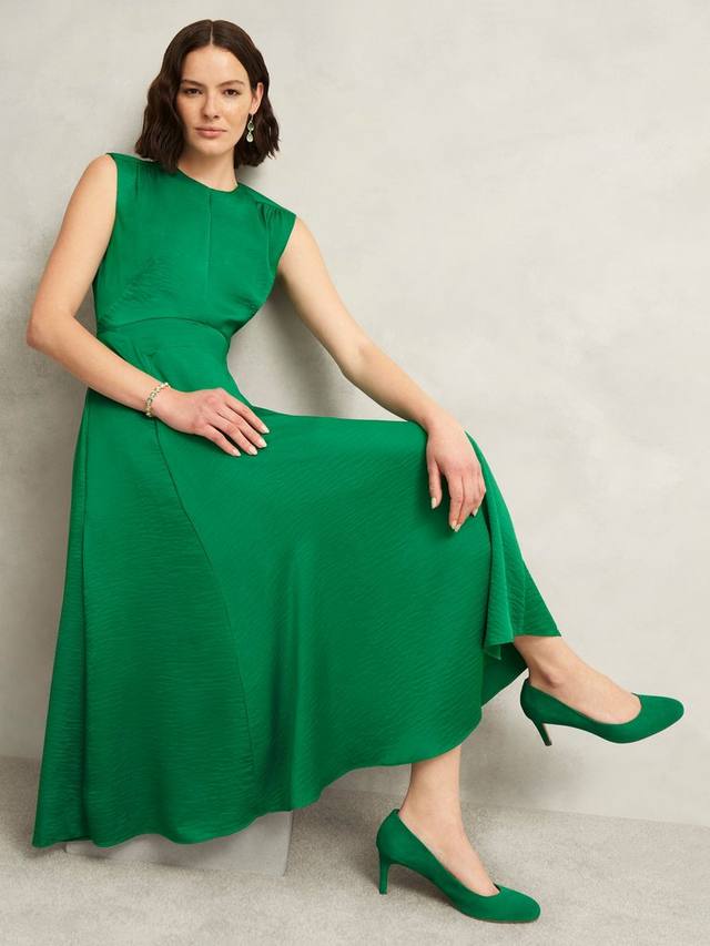 Платье Isobel, воплощающее современную элегантность из атласа цвета драгоценных камней, придаст вашему праздничному наряду четкий облегающий силуэт и изысканные детали.