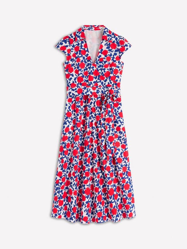Вот это да! Это хлопковое платье миди от Boden с рукавами-крылышками, воротником и цветочным принтом.