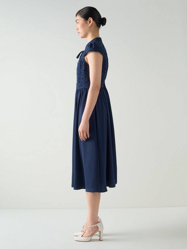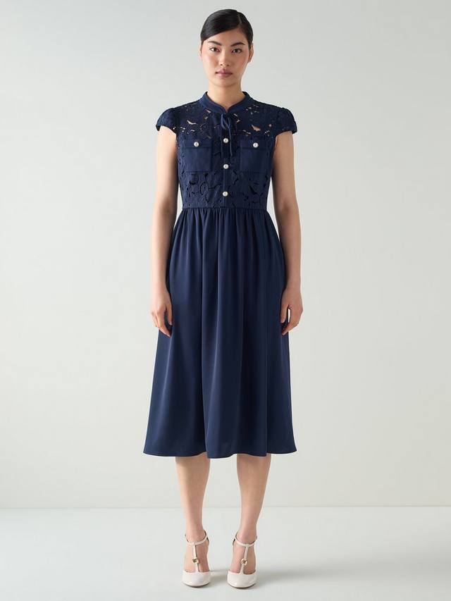 Представляем Paige — элегантное платье миди из креповой ткани, которое прекрасно движется при каждом шаге. Лиф украшен изысканной ажурной отделкой и женственным завязывающимся воротом, а короткие рукава обеспечивают идеальную посадку. Передние карманы добавляют стиль и практичность, а обтянутые пуговицы создают изысканный образ. Идеально подходит для вечерних мероприятий. Дополните образ туфлями на каблуке с ремешками и изящными украшениями, чтобы создать элегантный образ как для ужина, так и для танцев.
