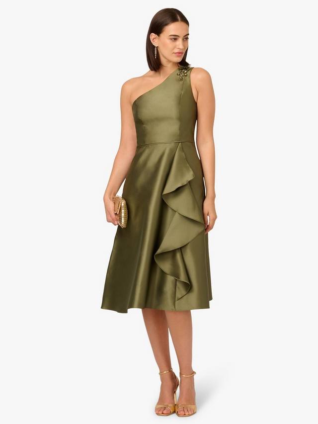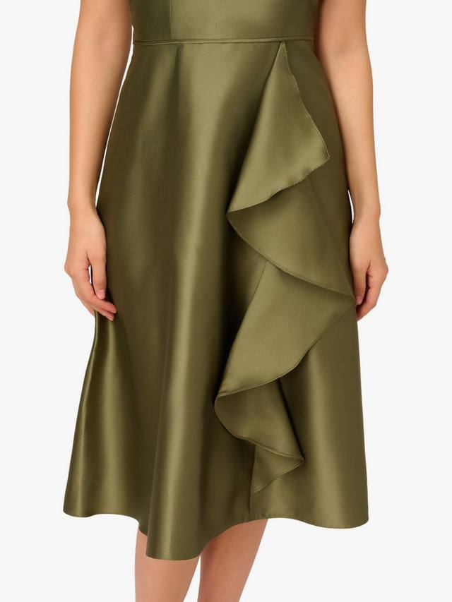 Тонкий микадо придает этому элегантному коктейльному платью миди легкость и сияющий блеск. Лиф с рельефными швами и поясом с окантовкой сочетается с пышной юбкой, создавая классический силуэт с расклешенной юбкой.