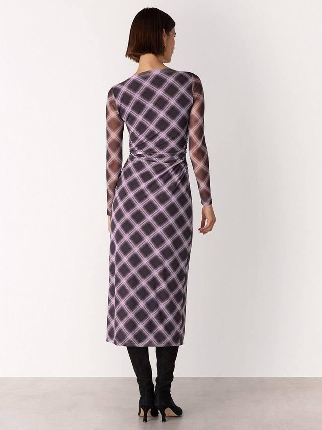 Эффектное клетчатое платье-футляр миди. Косой вырез и прозрачные длинные рукава обеспечивают комфорт и стиль, а продуманный дизайн обеспечивает непринужденную элегантность.