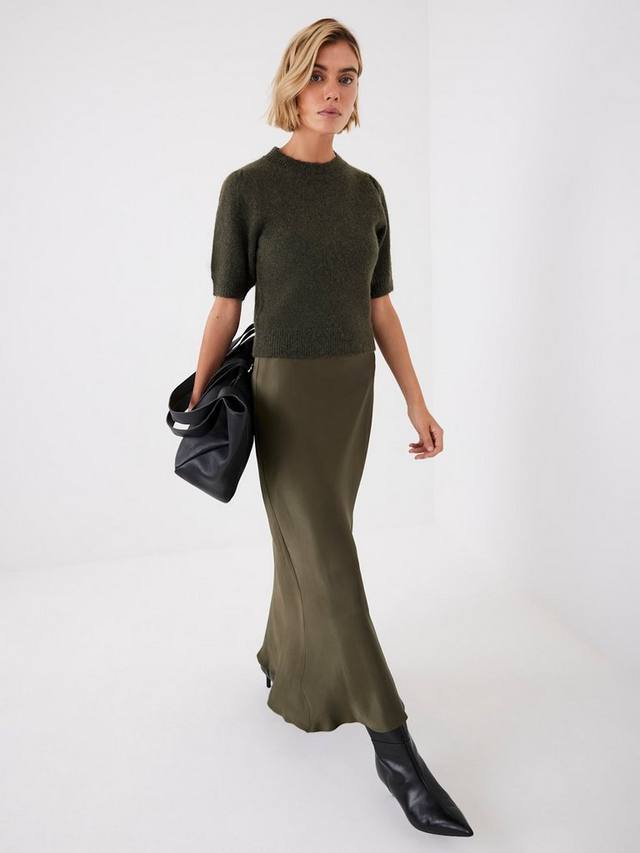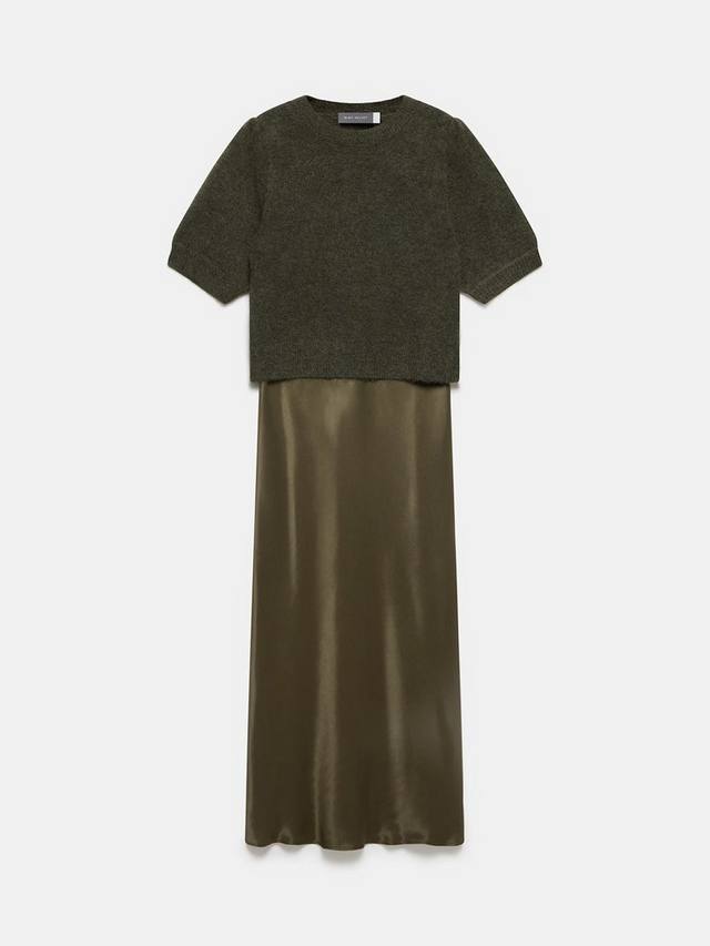 Многослойное платье-джемпер с круглым вырезом, короткими рукавами и жатым слоем комбинаций с длиной подола миди.