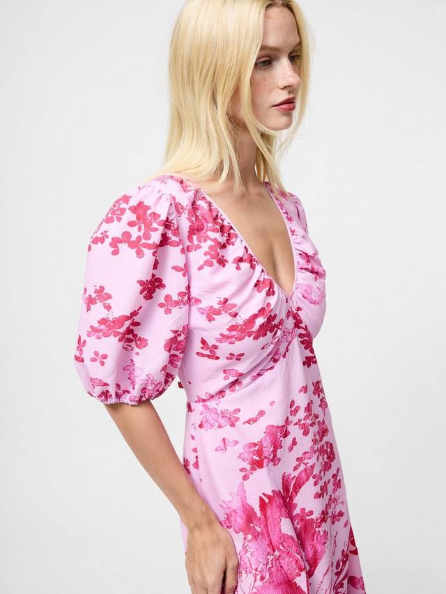 Платье Isla Odette с V-образным вырезом добавит романтики вашему гардеробу. Это платье с цветочным принтом струящегося силуэта миди с объемными рукавами-буфами и V-образным вырезом с рюшами.