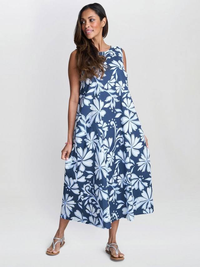 Встречайте лето в платье-палатке Rory от Gina Bacconi – игривом и элегантном дополнении к вашей повседневной одежде. Это платье свободного силуэта без рукавов украшено ярким цветочным принтом. Свободный крой обеспечивает комфорт и стильную струящуюся ткань. Платье средней длины без подкладки.