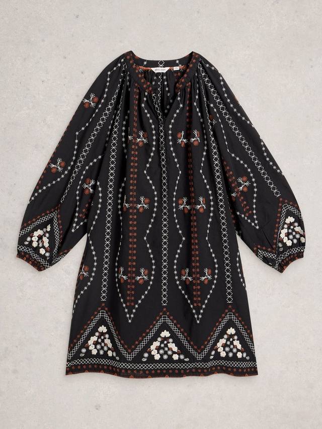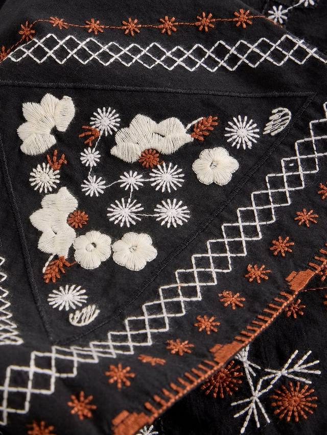 Это мини-платье-халат сочетает в себе игривый силуэт и искусную вышивку, предлагая вам непринужденный стиль и повседневный комфорт. Мягкий органический хлопок приятен на ощупь, а свободный крой позволяет двигаться уверенно, куда бы вы ни отправились.
