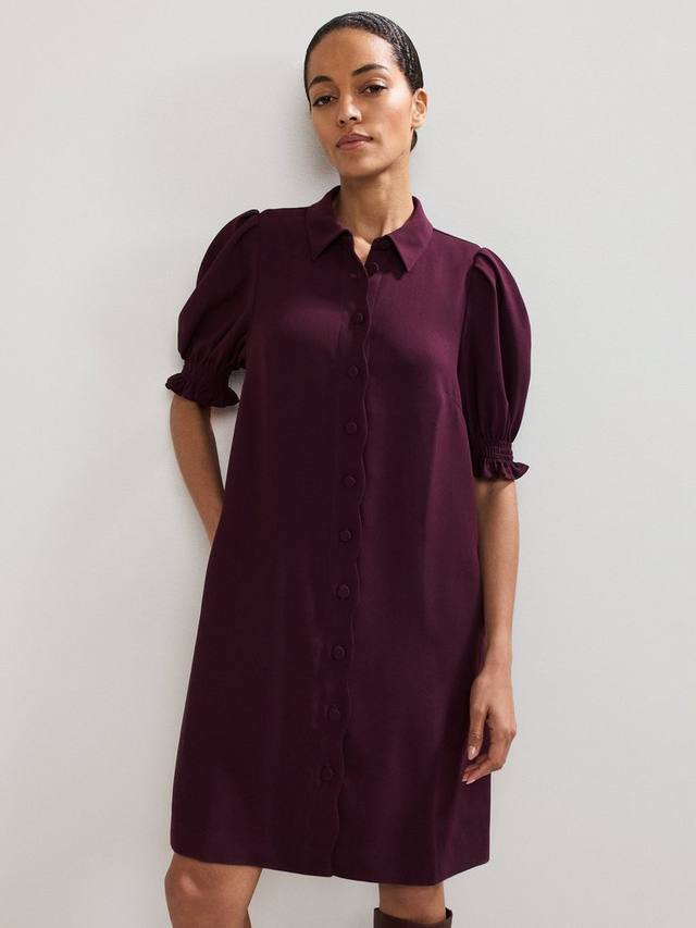 Это мини-платье-рубашка добавит изюминку вашему повседневному гардеробу благодаря элегантному воротнику, прямому силуэту и коротким рукавам. Наслаждайтесь комфортом на любой прогулке благодаря потайной молнии и фестончатому краю, создающему элегантный вид.