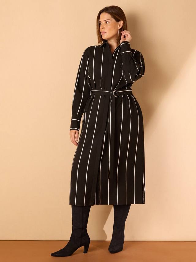 Это платье-рубашка из великолепной ткани с полосатым принтом станет элегантным и вневременным дополнением к вашему гардеробу и идеально подойдет для работы или офиса. Классический вырез горловины и застежка на пуговицы спереди позволяют стилизовать его по своему вкусу. Завязка на талии обеспечивает идеальную посадку, не стесняя фигуру. Вытачки на груди и манжеты на пуговицах на рукавах придают платью облегающий силуэт, делая его невероятно удобным.