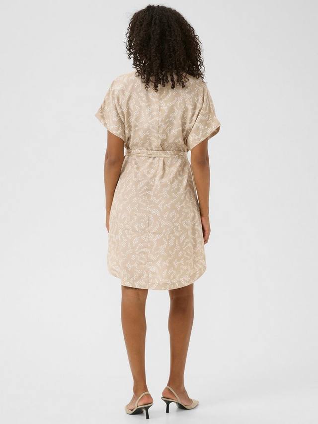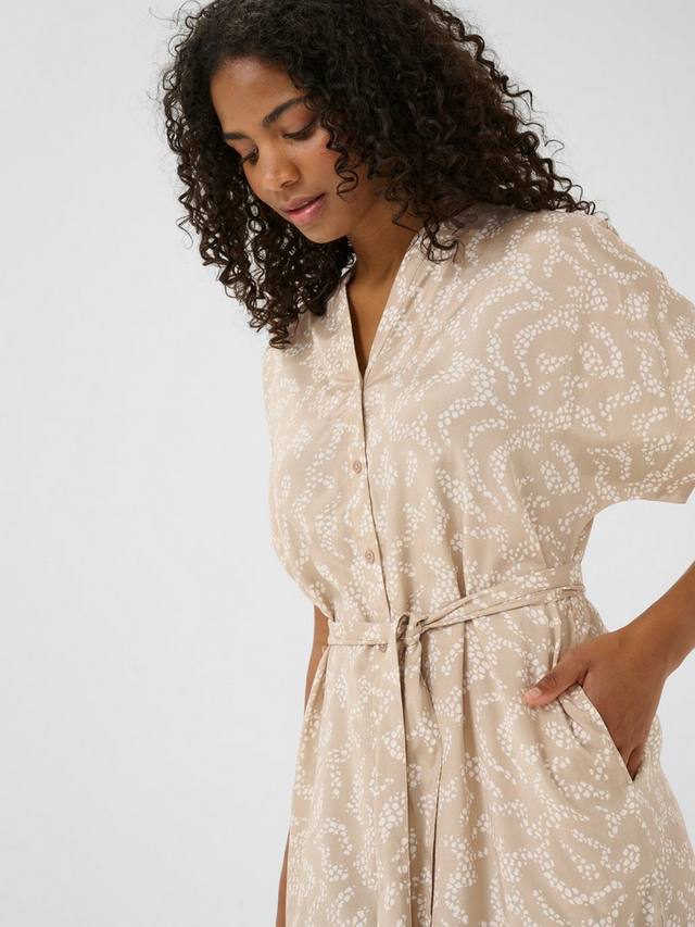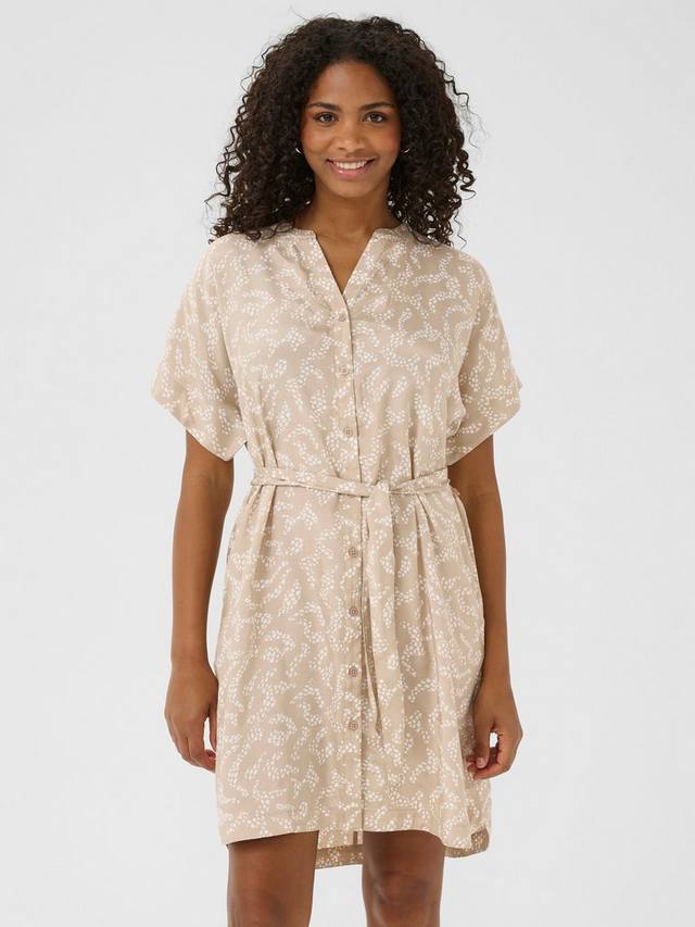 Ощутите элегантность и комфорт в платье-рубашке KAbarton от KAFFE, сшитом из струящейся ткани с абстрактным принтом, идеально подходящей для любого случая. Платье имеет круглый вырез, застежку на пуговицы спереди и короткие рукава. Завязывающийся пояс подчеркивает фигуру.