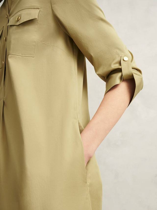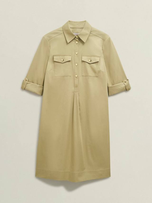 Платье Miley, отличающееся непринужденностью в повседневном стиле, воплощает практичный тренд благодаря основе цвета верблюжьей шерсти, рубашечным акцентам и практичным карманам.