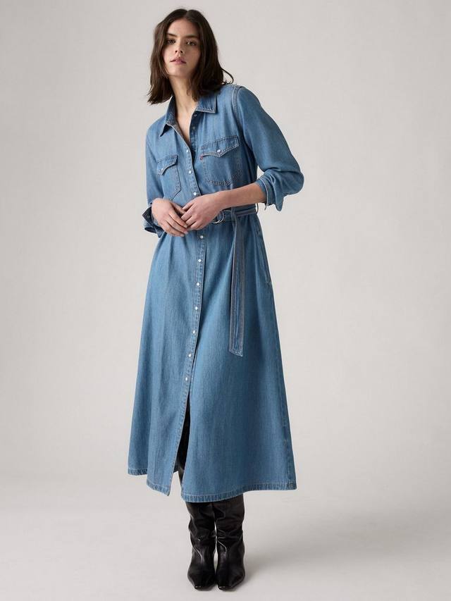 В западном, современном и удобном для ношения как на каждый день, макси-платье Quincey с длинными рукавами застегивается на пуговицы спереди, имеет пояс, подчеркивающий талию, и длину до щиколотки.