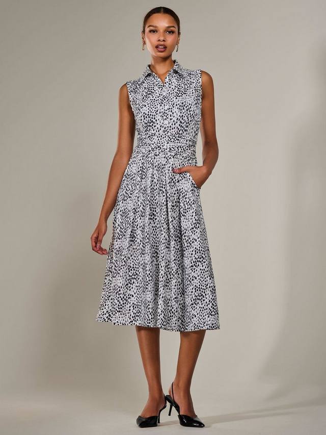 Почувствуйте себя стильно в этом платье-рубашке без рукавов от Jolie Moi, новом базовом предмете вашего делового гардероба. Трикотажная ткань в горошек дополнена стильным воротником и застёжкой на пуговицы спереди. Платье также дополнено классическим поясом с рюшами, который можно завязать сзади. Юбка со складками имеет длину миди и дополнена практичными боковыми карманами.