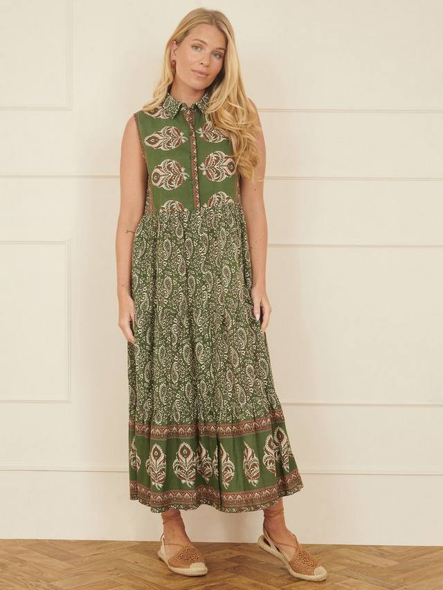 Эта рубашка с застежкой на пуговицы, выполненная из лёгкого хлопка с красивым принтом в виде листьев, с многоуровневым дизайном и длиной миди, прекрасно подойдёт на каждый день. Воротник добавит изюминку этому летнему образу.