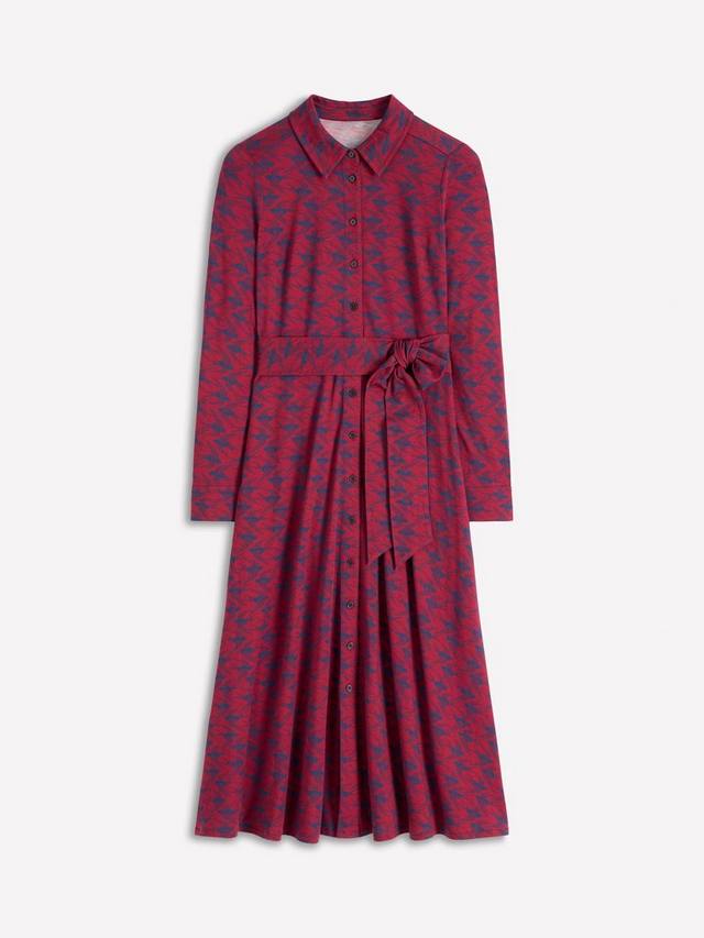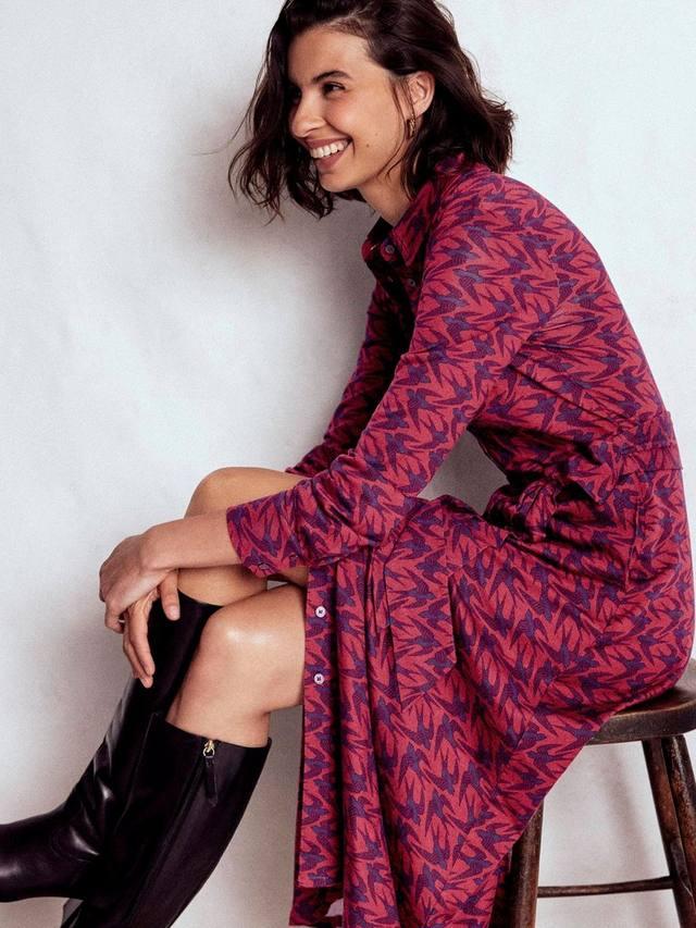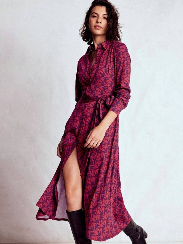 Это длинное платье миди от Boden имеет элегантный воротник и привлекательный графический рисунок.