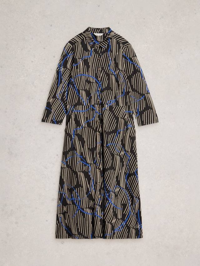 Это платье миди с короткими рукавами из хлопковой смеси от White Stuff оформлено воротником-стойкой и дополнено абстрактным принтом.
