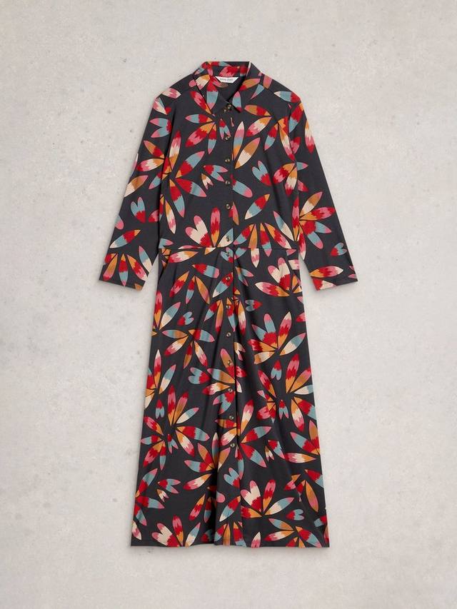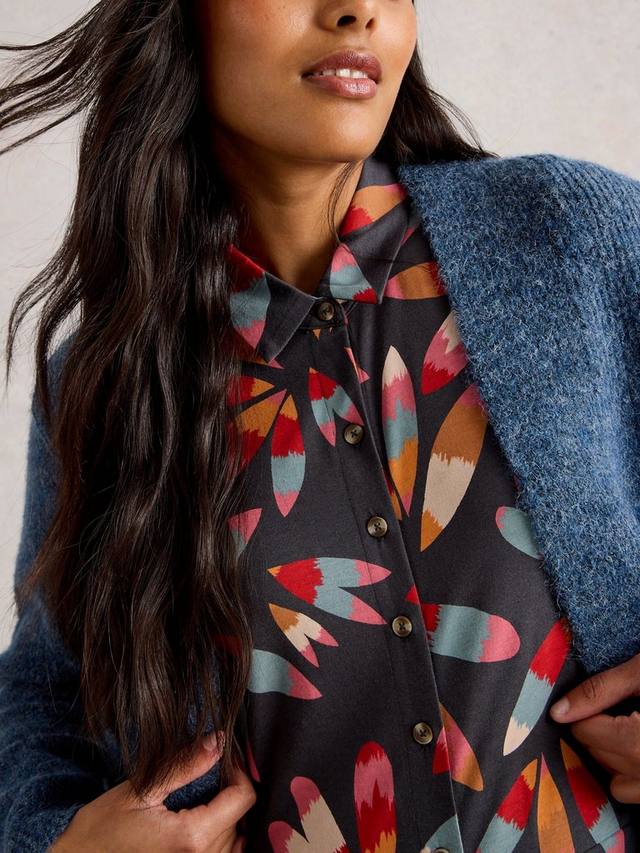 Платье-рубашка миди от White Stuff отличается мягкостью и комфортом, а также привлекательным абстрактным шармом. Продуманный дизайн сочетает в себе практичные детали, такие как рукава три четверти и удобная застежка на пуговицы, превращая каждый день в праздник.
