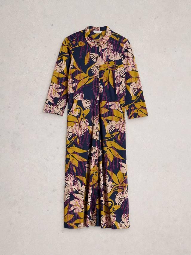 В этом платье-рубашке миди элегантные детали сочетаются с легкостью движений. Принт с листьями добавит интриги в ваш повседневный образ, а мягкая ткань и застёжка на пуговицы обеспечат комфорт в любой ситуации. Боковые карманы.