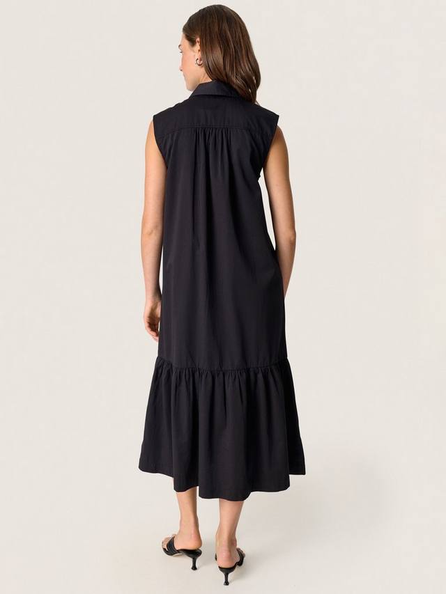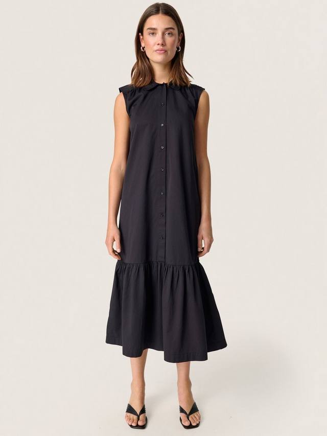 Это платье от Soaked In Luxury, выполненное по силуэту рубашки без рукавов с одноуровневым подолом, длиной миди. Платье изготовлено из чистого хлопка, имеет аккуратный воротник-стойку и застежку на пуговицы спереди. Оно идеально подходит для создания универсальных образов как днем, так и вечером.