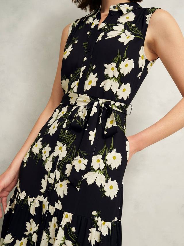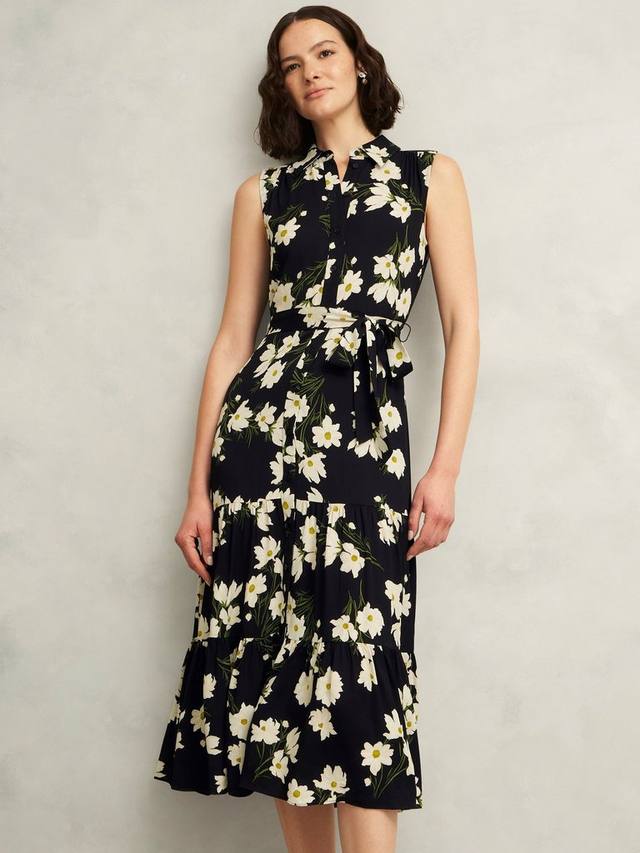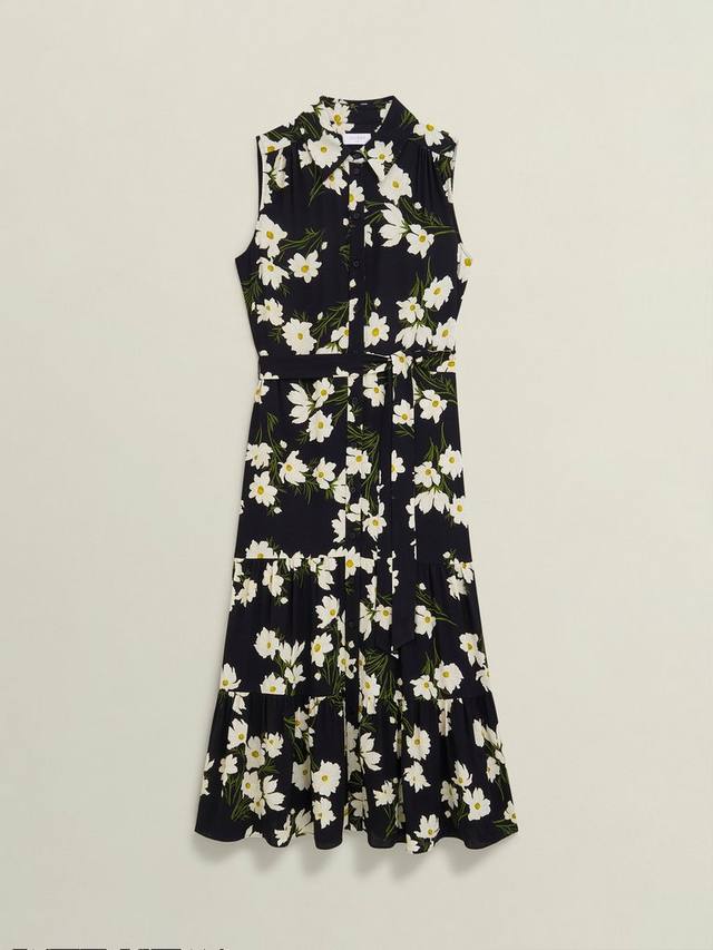 Это платье длиной до колена от Hobbs с многоуровневым кроем обеспечивает дополнительную свободу движений и выполнено из воздушной вискозной ткани. Элегантный воротник-стойка напоминает о цветочных мотивах, которые мы не можем не использовать в своих коллекциях из сезона в сезон.