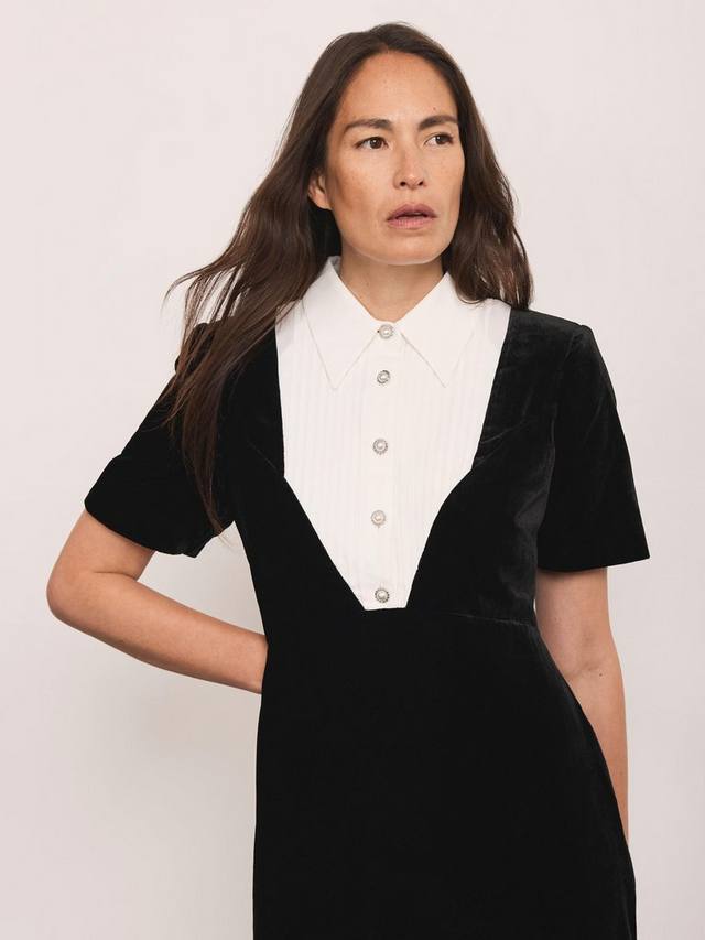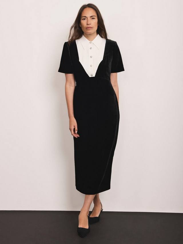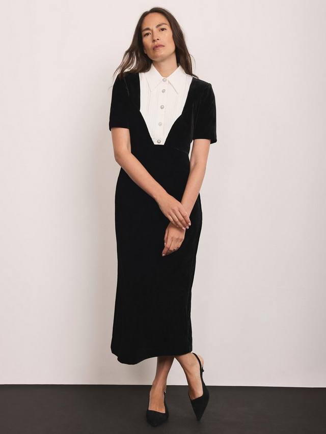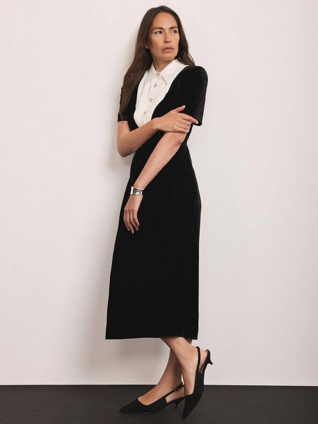 Это платье-рубашка миди из мягкого бархата обеспечит вам комфорт и удобство на каждый день. Изящная кокетливая деталь рубашечного покроя добавит изюминку, а свободный крой и классический воротник обеспечат вам комфорт и элегантность, куда бы вы ни отправились.