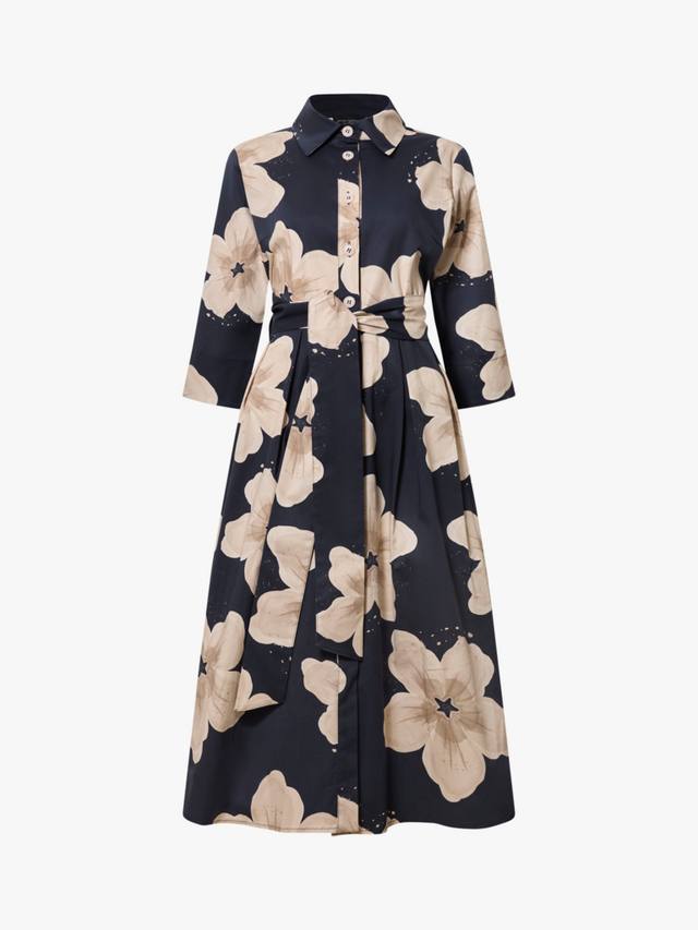 Откройте для себя платье James Lakeland Navy Flower Cotton Dress, в котором комфорт сочетается с элегантностью. Платье изготовлено из дышащего хлопка и украшено эффектным бежевым цветочным рисунком на темно-синем фоне. Классический воротник, застежка на пуговицы спереди, рукава три четверти и пояс, подчеркивающий талию, создают изящный силуэт. Идеально подходит для повседневных выходов или особых случаев.