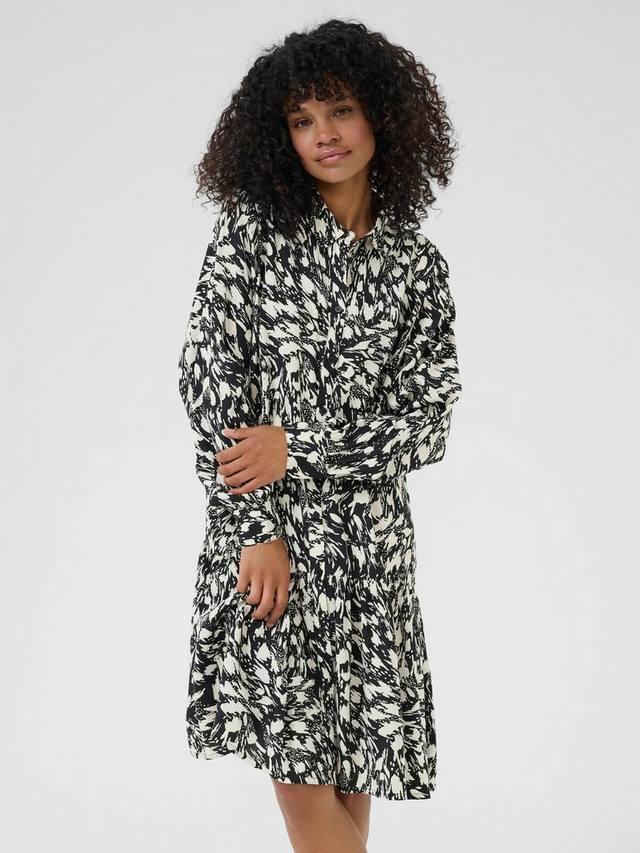 Стильное платье с пуговицами. Это платье от KAFFE длиной до колена с длинными рукавами, элегантным воротником и интригующим абстрактным принтом.
