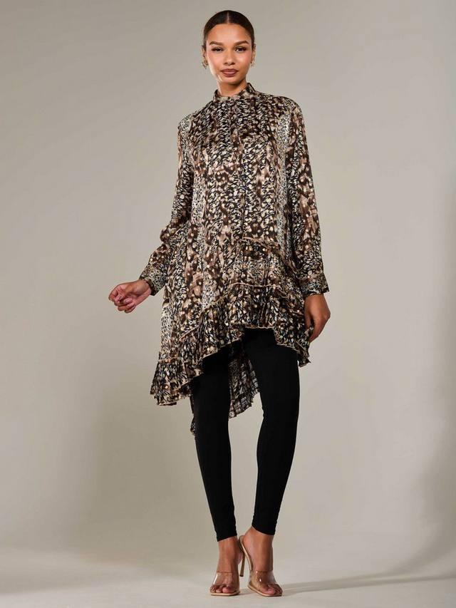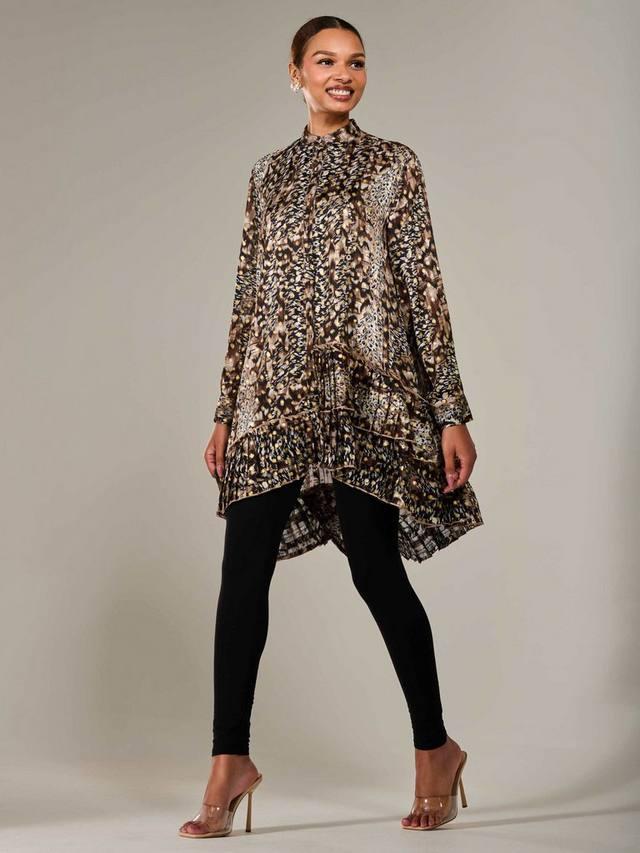 Выглядите стильно и непринужденно в платье-рубашке Animal Midi от Jolie Moi, идеальном предмете гардероба, который можно носить как на каждый день, так и на каждый день, благодаря плиссированному асимметричному подолу, который красиво струится. Это платье-рубашка из легкой, воздушной ткани с анималистичным принтом имеет воротник-стойку и застежку на пуговицы спереди, что делает его удобным и легким в носке. Длинные рукава с манжетами и складками — идеальное дополнение к этому изделию, а отделка пуговицами завершает образ.