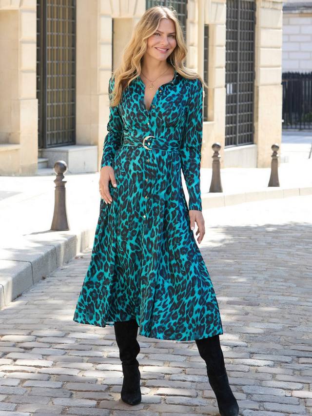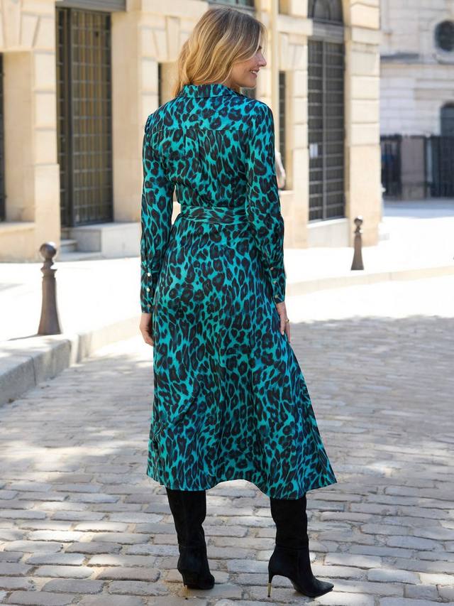 Незаменимая вещь в любом гардеробе. Это миди-платье от Sosandar с длинными рукавами, воротником и анималистичным принтом идеально подходит для прогулок в широком стиле.