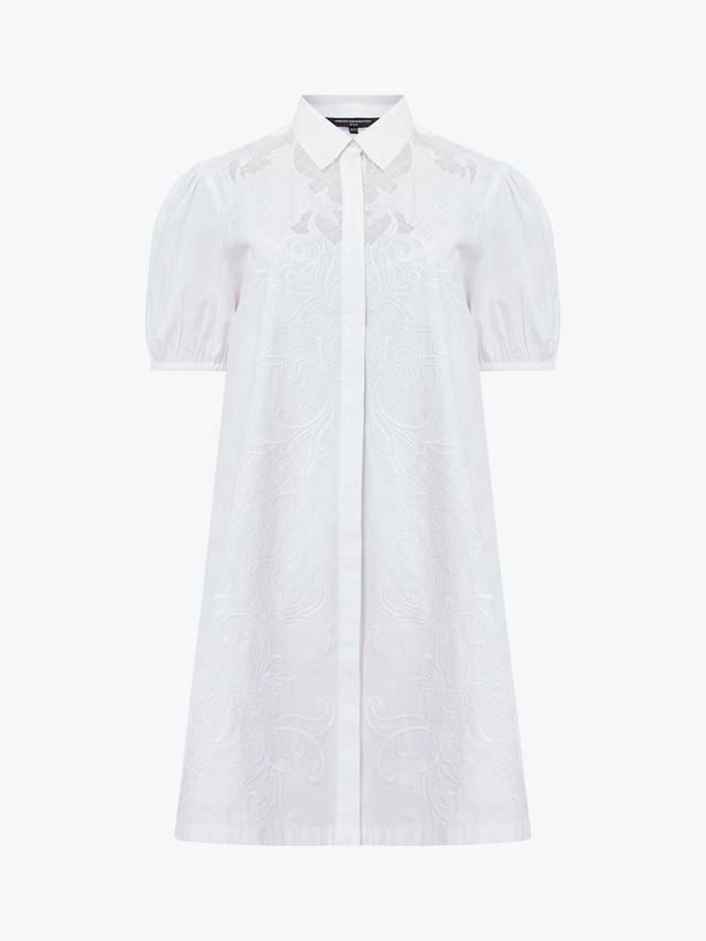 Платье-рубашка Cambria Cotton Embroidered Shirt Dress от French Connection — это идеальное сочетание винтажных деталей и современного дизайна. Это мини-платье украшено изящными кружевными вставками на груди, которые добавляют нотку женственной утонченности классическому силуэту платья-рубашки, а рукава-буфы добавляют лёгкий объём, уравновешивая его изящную форму. Это платье добавляет непринуждённой элегантности с ноткой романтики, делая его универсальным как для повседневных выходов, так и для более изысканных случаев.
