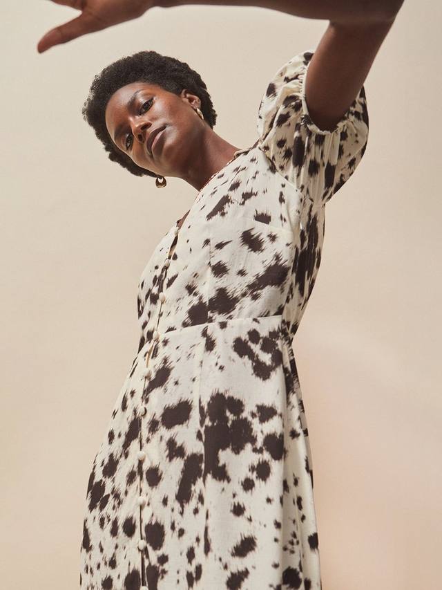 Платье-рубашка миди от Ro&Zo придаст уверенности в себе. Яркий абстрактный анималистичный принт привлекает внимание, а мягкая вискоза и короткие рукава обеспечивают комфорт. Это платье можно носить как слоями, так и по отдельности, оно легко адаптируется под вашу фигуру.