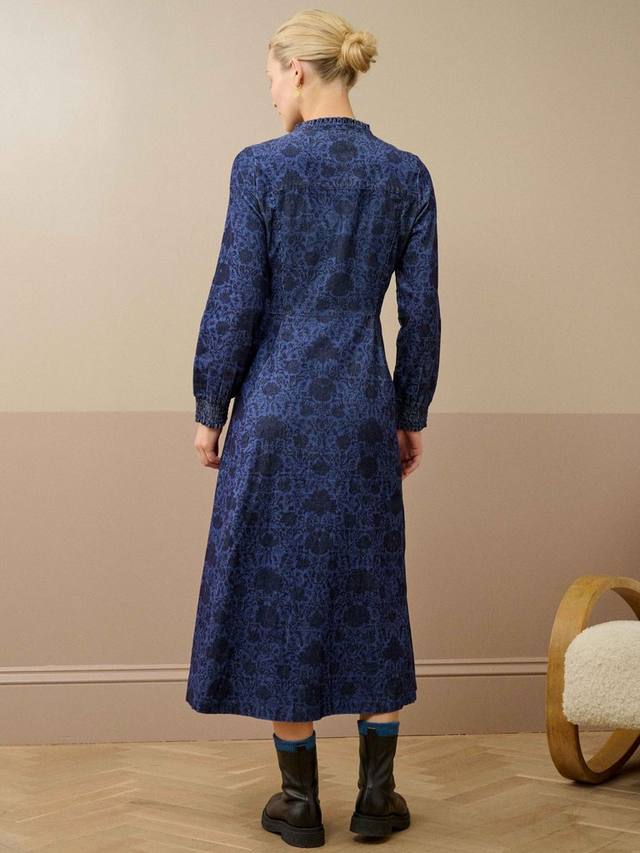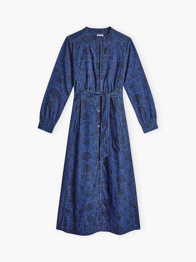 Это шикарное платье-рубашка из бархатисто-мягкого хлопкового иглопробивного шнура будет привлекать внимание в течение всего сезона своим привлекательным тональным принтом, поясом, подчеркивающим талию, и женственными оборками на вырезе и передней планке.