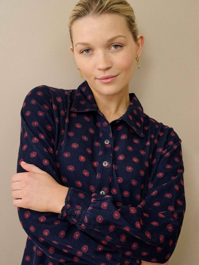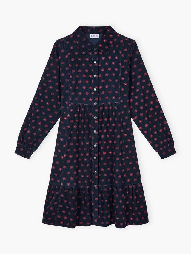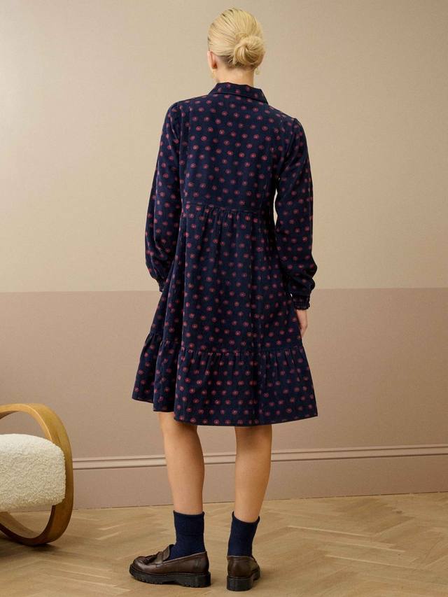 Вам понравится эта прелесть длиной до колена с воротником с отложным краем, частично эластичными манжетами, многоуровневой юбкой и текстурным принтом в виде горошка на мягком бархатистом шнурке.