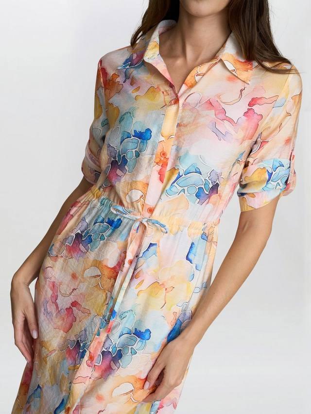 Это великолепное платье-рубашка — шикарный вариант для любого летнего мероприятия. Вырез воротника и пуговицы до самого низа делают его струящимся и универсальным. Платье с длинными рукавами выполнено из мягкого материала с цветочным узором. Регулируемая талия позволяет регулировать посадку, подчеркивая достоинства фигуры.