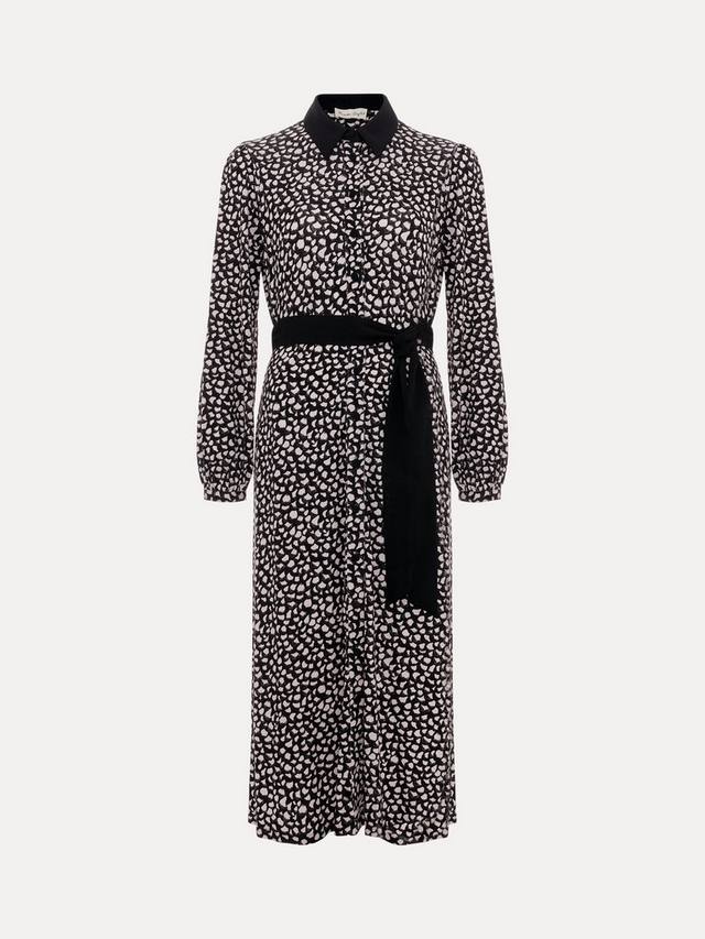 Платье-рубашка с принтом длины миди, поясом-шарфом, воротником и застежкой на пуговицы спереди.