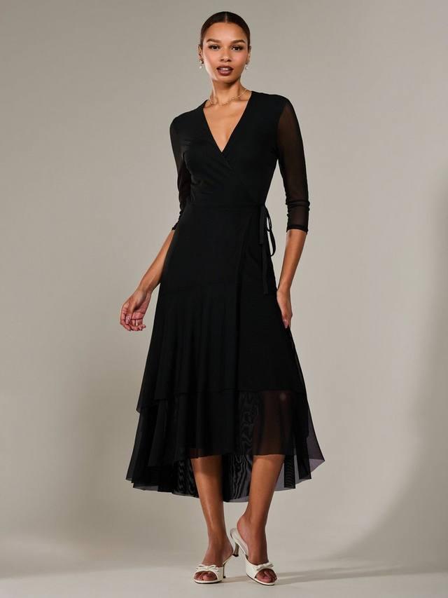 Это изысканное платье от Jolie Moi идеально подойдет для вашего следующего особого случая. V-образный вырез спереди, рукава три четверти, завязка на талии и многоуровневый оборчатый подол создают привлекательный силуэт. Платье выполнено из легкой сетчатой ткани струящейся длины мидакси, это платье удобное и элегантное.