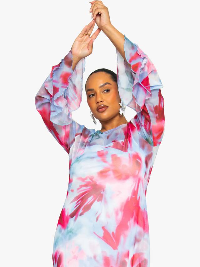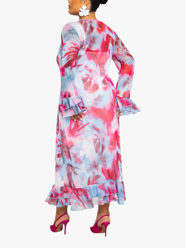 Это потрясающее сетчатое макси-платье больших размеров с размытым цветочным принтом идеально подходит для вечернего выхода, обеспечивая вам стильный и уверенный образ.