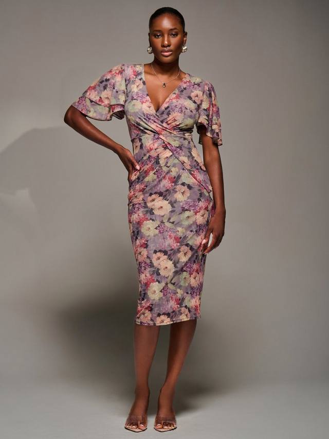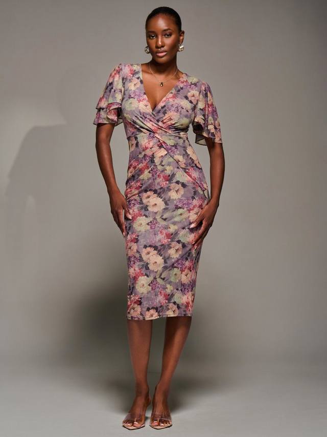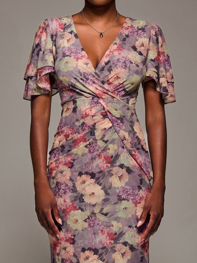 Почувствуйте себя прекрасно в сетчатом платье с принтом Ангел и рукавами. Платье выполнено из мягкой воздушной сетчатой ткани с великолепным принтом. Облегающий силуэт идеально подчеркивает фигуру. Плиссировка на талии и двухслойные рукава с оборками придают этому платью миди элегантность. Великолепный V-образный вырез и мягкая трикотажная подкладка обеспечивают дополнительный комфорт. Это платье идеально подходит для любого случая и легко надевается благодаря потайной молнии сзади.
